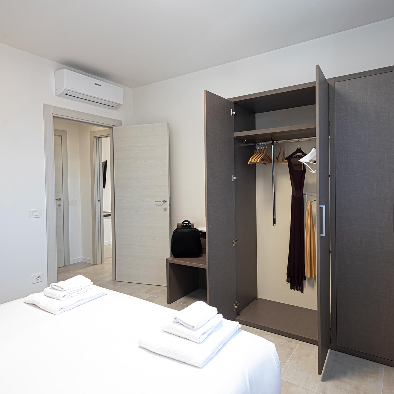 Tutte le unità abitative sono provviste di smart TV, connessione Wi-Fi gratuita, aria condizionata indipendente, tapparelle elettriche e finestre con triplo vetro per garantire massimo comfort e isolamento termo-acustico. Ogni appartamento dispone inoltre di un posto auto riservato, e l’accesso alla struttura avviene in modo completamente automatizzato e autonomo.